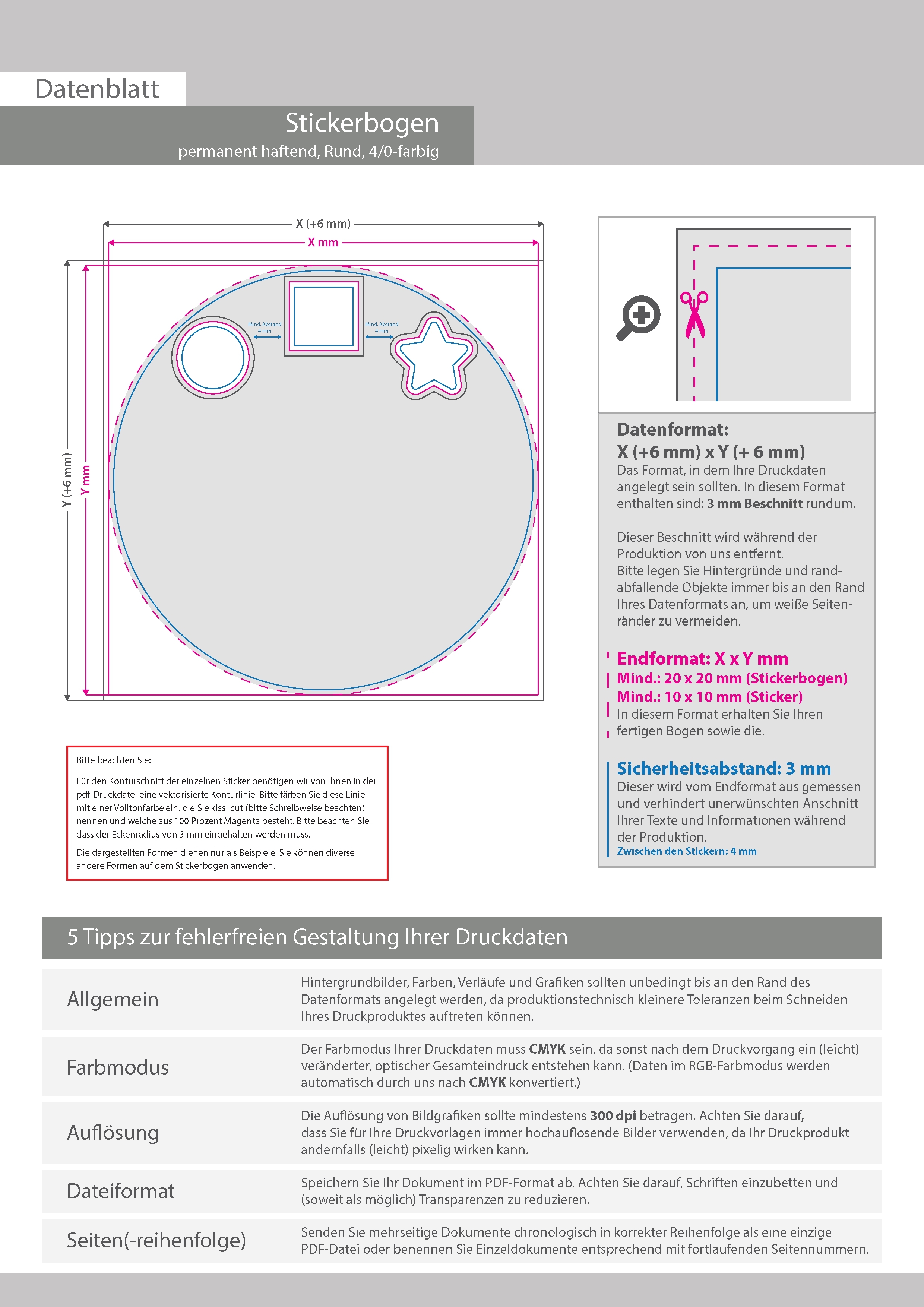 Stickerbogen permanent haftend 4/0 farbig bedruckt rund (kreisrund konturgeschnitten)