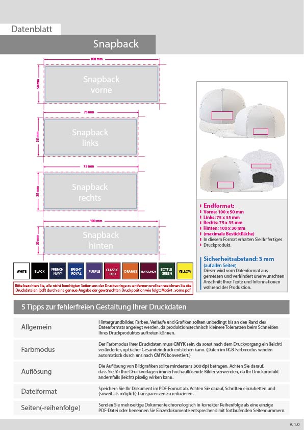 Snapback Panel Rapper Cap, mit ZWEI Stickpositionen