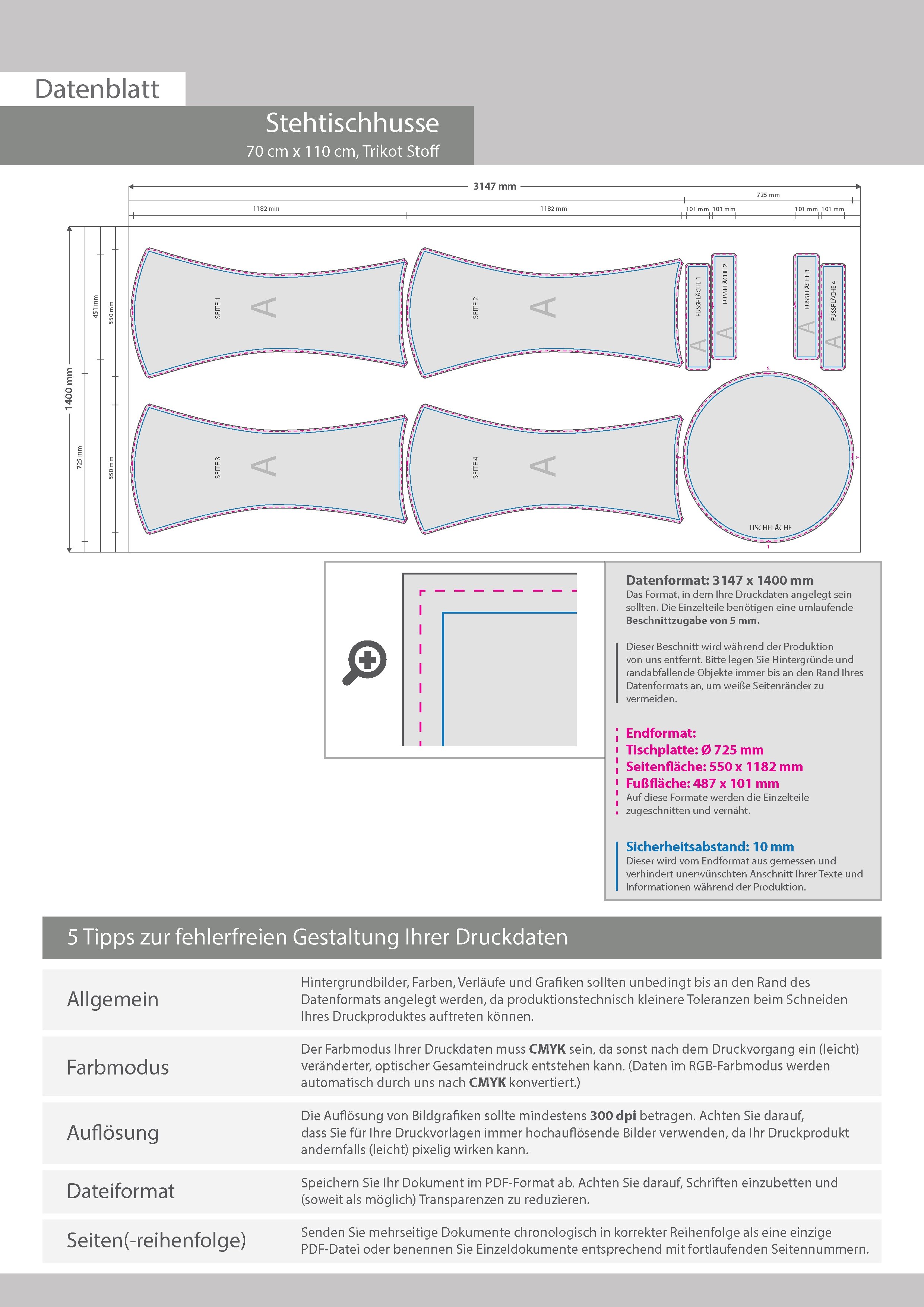 Stehtischhusse, 70cm x 110cm, 4/0-farbig bedruckt